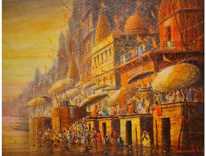 The artist Paramesh Paul, is one of the finest artists depicting scenes of Benaras. Originally from West Bengal, the artist now lives and works from Mumbai. Being greatly inspired by his journeys, his paintings depict enigmatic voyages of peacefulness and spirituality, colourfully capturing the beauty of the Ganges with beautiful light and reflections. Paramesh Paul has exhibited in many solo and group shows in India and abroad