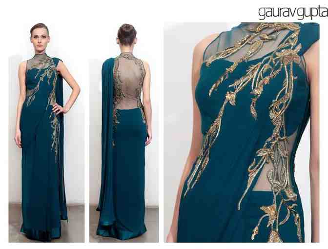 Blue Embroidered Saree Gown - By Designer Gaurav Gupta
