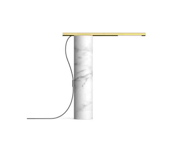 T.O embodies a harmonious dialogue between solidity and lightness offering unlimited contexts for use in residential and workplace environments, all within a minimal footprint. T.O features a fully dimmable LED light source with tactile push switch appropriately positioned at the end of arm. Both table and floor versions feature a magnetically attached light arm over a marble cylinder base while the light wand can be rotated up to 360 degrees to provide both direct and indirect light for task and ambient lighting needs alike. T.O is offered in 2 marble base finishes in Marquina black and Carrara white while the light arm is elegantly contrasted in polished surfaces in brass and chrome. T.O is a seamless integration of functional lighting and sculpture.