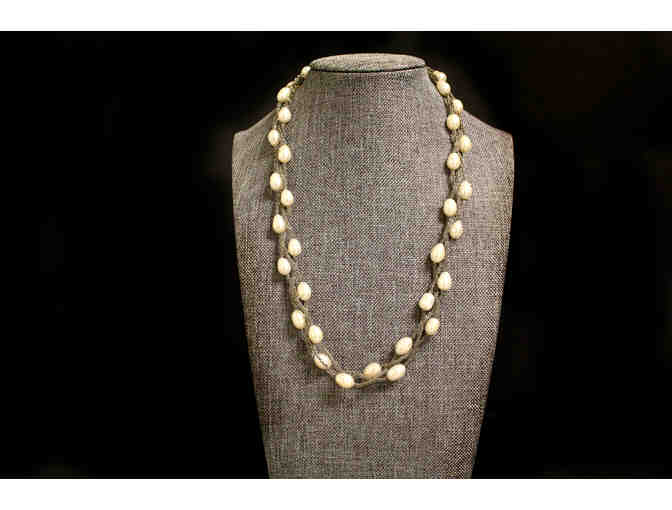 Necklace: 3 strands twisted cultured freshwater pearls in 6mm-7mm with crystal spacers and magnetic clasp