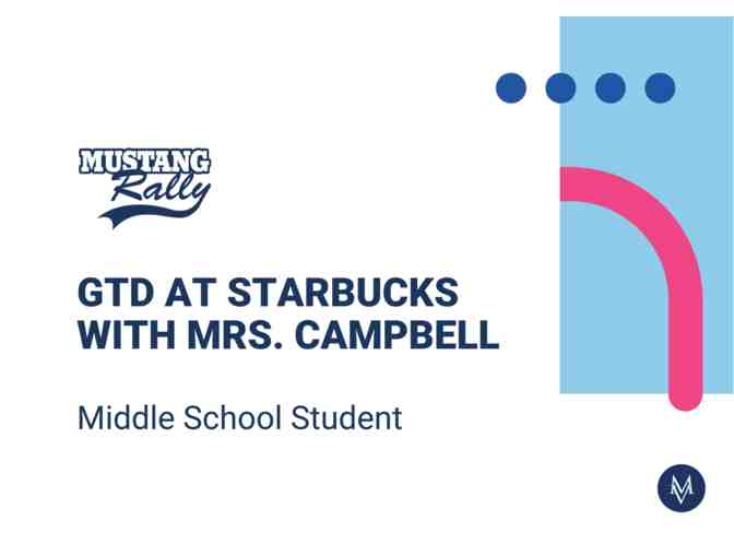 With this auction item, you and 3 friends can go with Mrs. Campbell to work at Starbucks with a treat. Date will be set by Mrs. Campbell and winners.