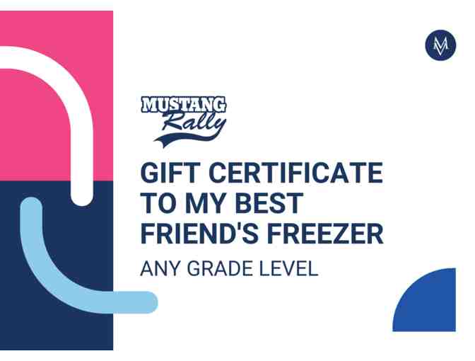 Gift certificate to My Best Friend's Freezer for $100(frozen, ready-made meals, breakfast items, soups, appetizers, & desserts). The current Menu is included with Gift Certificate. Redeem by placing order via online Google form.
