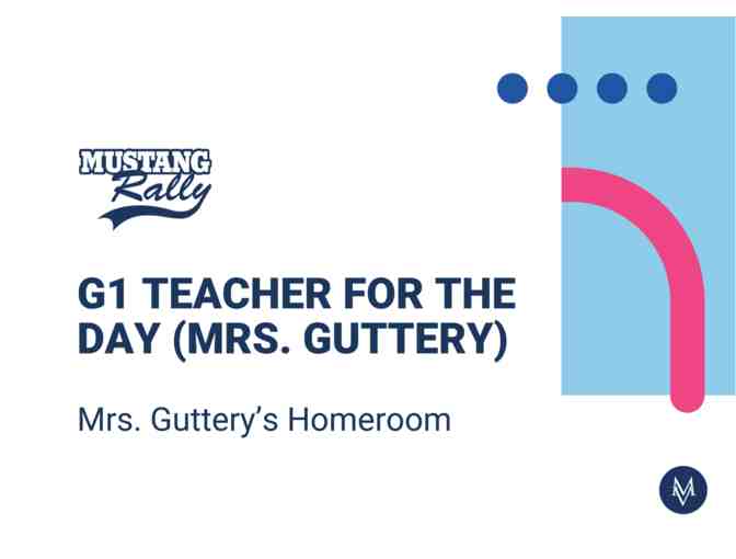 One student from each G1 class will be the Teacher For The Day. The Teacher For The Day will receive a special lesson plan as well as a Teacher Survival Gift. This special event will take place before the end of the school year. G1 teacher will reach out to their student to schedule the date.