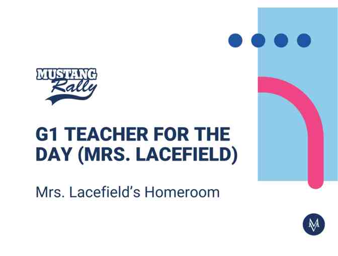 One student from each G1 class will be the Teacher For The Day. The Teacher For The Day will receive a special lesson plan as well as a Teacher Survival Gift. This special event will take place before the end of the school year. G1 teacher will reach out to their student to schedule the date.