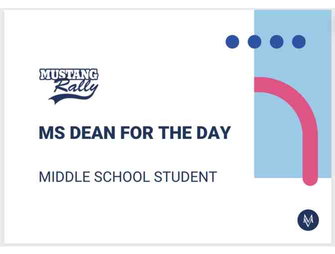 The winner will have the opportunity to be the Middle School Dean of Student Life for the Day. They will be able to make important decisions such as declaring an out-of-uniform spirit day and planning for upcoming student events like pep rallies and Spring Socials. The new Dean will also be able to order lunch from an area restaurant. The winner will coordinate with Mr. Ayers to determine a date.
