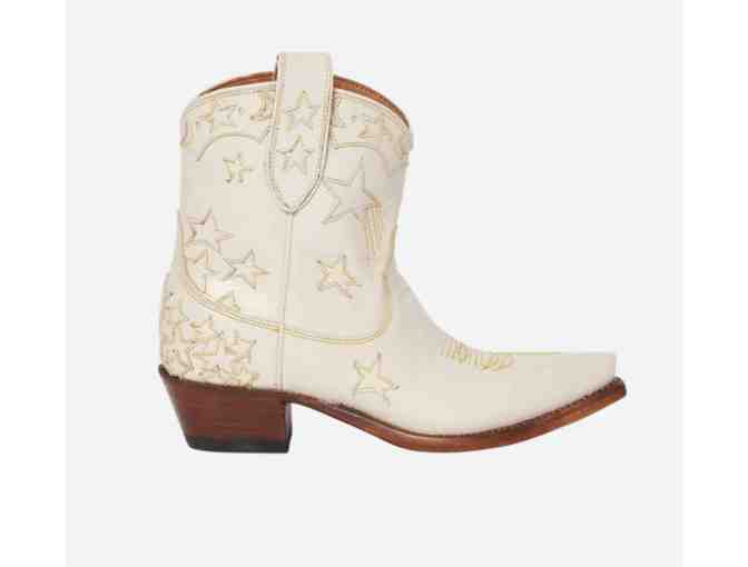Our most popular boot and the backbone of our collection, Brooke is a subtle stunner with endless versatility. This eye-catching shorty boot is magnificently detailed in crème-on-crème kidskin and boasts our signature jumping stars – an homage to the starry West Texas night skies under which we grew up.