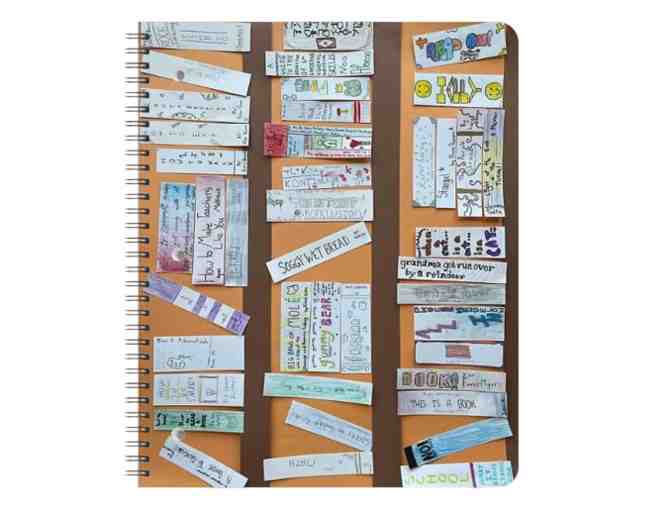 8.5"x11" spiral bound notebook with the class project image "6th Grade Bookshelf".