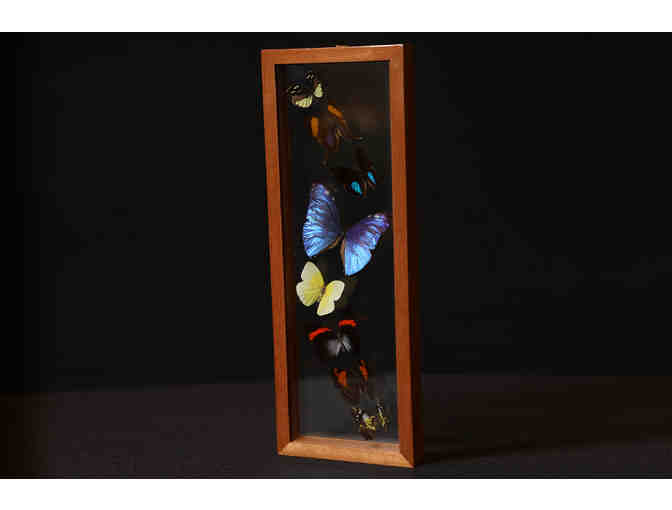 Proudly display this beautiful, framed butterfly piece featuring eight real butterflies that have been preserved and framed.