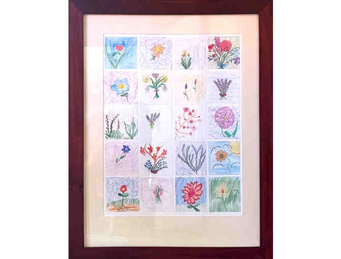 Collection of Crayon and Colored Pencil Flower Drawings by Class 2 (framed)