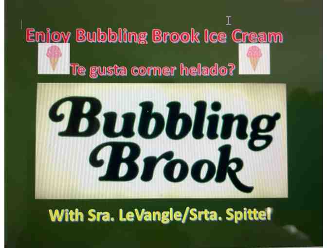 ¿Te gusta comer helado? The winner and two friends will enjoy ice cream at the Bubbling Brook at a date to be arranged when the weather is good! Pick up at Dale Street.