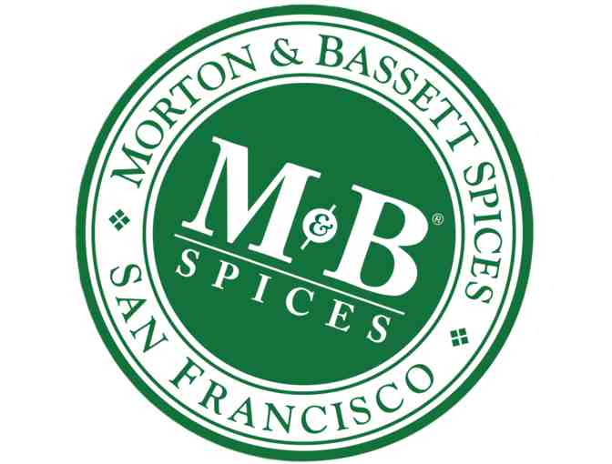 Morton and Bassett Spices basket inclueds 25 organic spice bottles, organic vanilla extract and a reusable stainless water bottle.