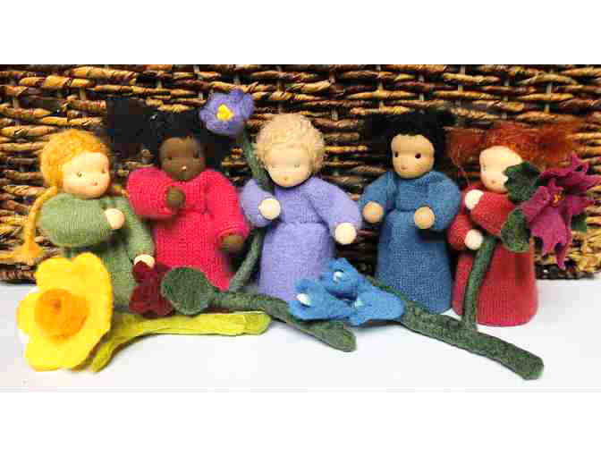Each doll stands up on a table with positionable arms and a removeable flower. Together they make an enchanting set including: Rosebud, Daffodil, Violet, Blue Bell, and Poinsettia