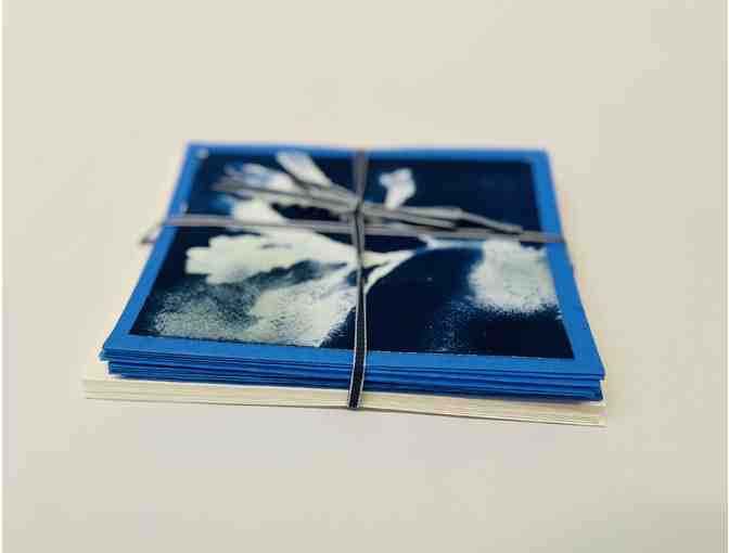 Class 6 studied light and learned a little about Cyanotype prints this year so they created stationary; each pack contains 12 cards and envelopes; each card with a unique Cyanotype print of plants, flowers, or seaweed!