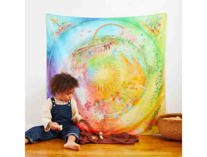 Large Around The Year On The Farm Playsilk is a limited edition collaboration between Sarah's Silks and illustrator Stephanie Green of Wilded Family.