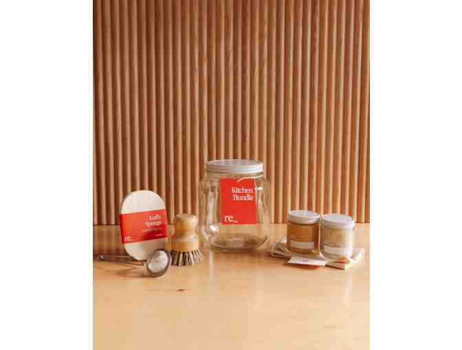 Includes: glass jar, peanut butter, celtic sea salt, organic cotton re_ produce bag, pot scrubber, 3-pack luffa sponge, tea strainer