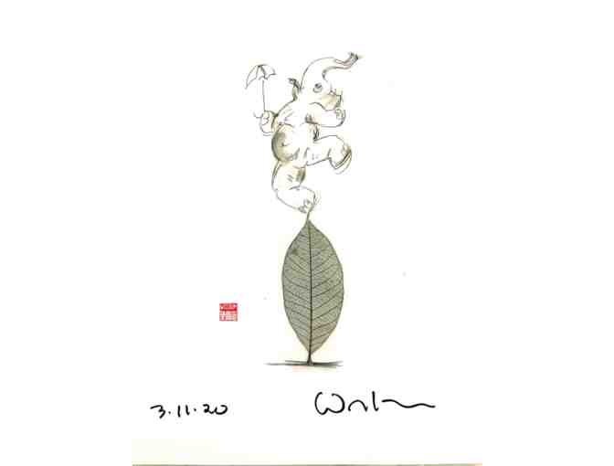 Elephant on a Leaf Signed Print by Artist Norton Wisdom