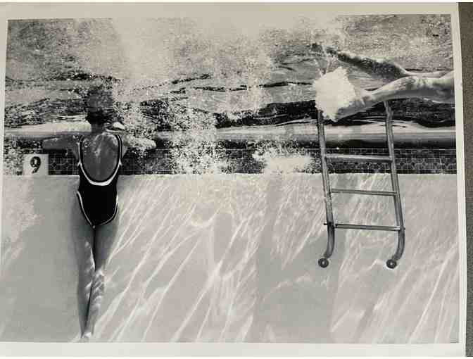 “ENJOYING POOL LIFE” - Black and white hand print. Archival matte paper. Photographed under water ca 1995 in Miami Hotel Pool on Kodak Tri-X film with Nikon F5 with 20 mm 2.8 lens. Underater housing