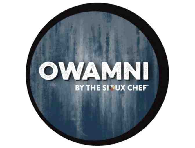 A $100 gift certificate to the James Beard Award-winning Owamni Restaurant in Minneapolis.