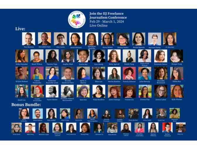 Registration to the Institute for Independent Journalists' annual convention in March 2025. The convention spans two days, with 12 live, interactive sessions featuring assigning editors, producers, experienced freelance journalists, fellowship directors, authors, agents, and more. Registration also includes a bonus bundle containing recorded interviews with assigning editors and producers, pitch guides, sample contracts, and other resources for building a financially and emotionally sustainable journalism practice.