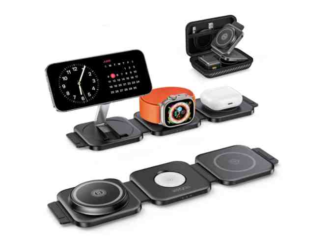 What is: It's a foldable, small, travelable, travel charger station! JARGOU charging station can charge for iPhone, for Apple watch, and for AirPods at the same time, charger station is simply a little helper to keep the desktop tidy! Exclusively designed for Apple fans.