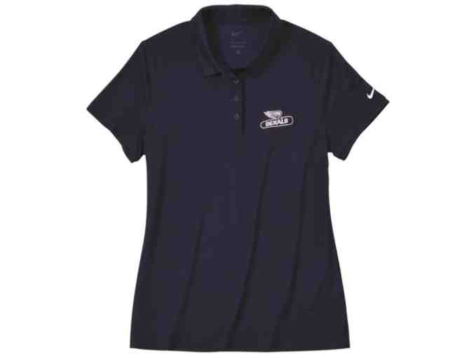 - Contrast heat transfer Nike® Swoosh logo is on the left sleeve
