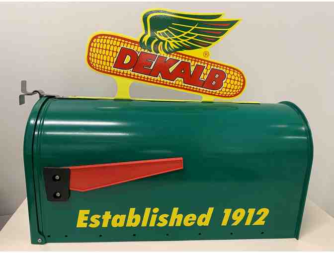 Large green DEKALB Mailbox that measures 20” high (including DEKALB sign on top), 21” deep, 8-1/2” wide