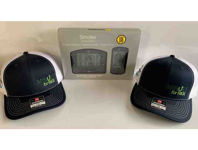 ThermoWorks Smoke Remote BBQ Alarm Thermometer with the Bayer logo and 2 Minuet for Rice hats.