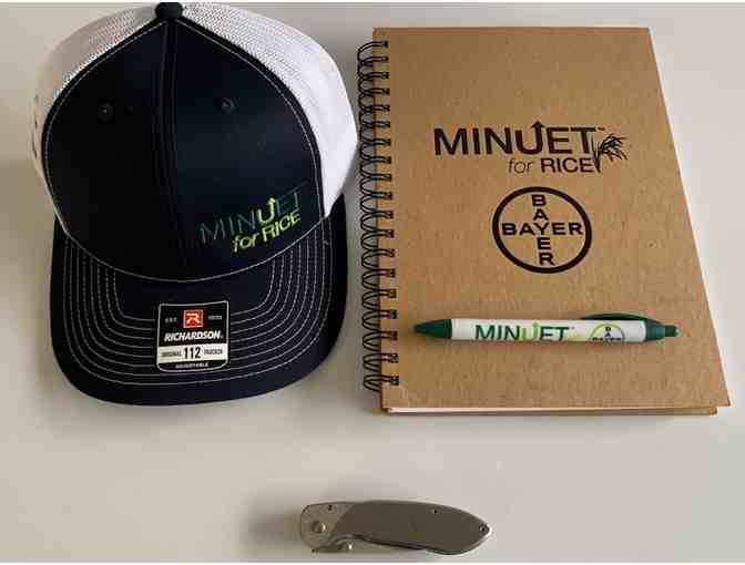 This listing is for a Minuet for Rice Richardson Cap, notebook, pen and Buck Noblemen stainless steel knife.