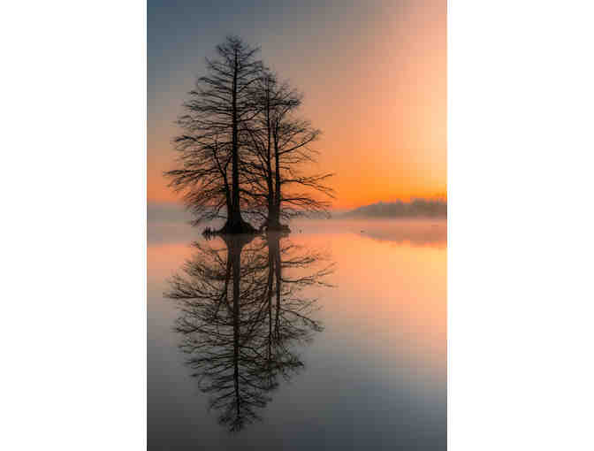 An incredible view of trees reflected in a calm lake at sunrise at Busch Conservation Area Lake 33 (St. Charles County). Picture take in March 2023. Camera: Nikon Z7_ii, 41mm focal length, f11