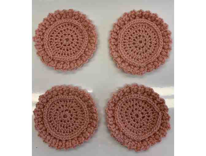 Set of four handmade coasters in a dusty rose pink color. Made Rhonda Rawling's daughter, Taylor.