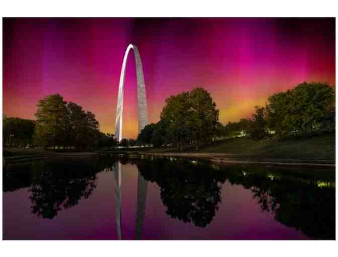 This image was captured on May 10, 2024 at The Arch in St. Louis. Normally an aurora could not be seen this far south, but with the very large CME on May 9-10 it was possible. Photoshop was used to bring out the color and contrast.