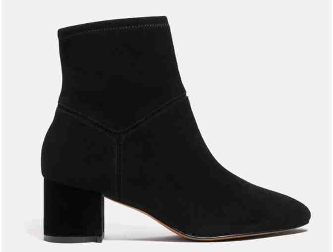The go-with-everything Gracie bootie is crafted of comfortable stretch suede for a precise fit. The pull-on style is finished with a walkable block heel perfect for all-day wear.