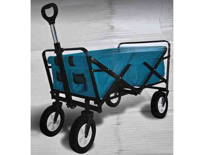 Turqouise Folding Wagon with Large Wheels and Pull Handle