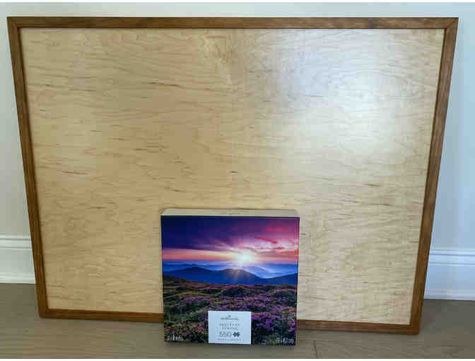 Ken made this terrific 24.75-inch by 32.75-inch puzzle board, where you can keep your current puzzle-in-progress and all of its unplaced pieces. No more having to share the dining room table with an unfinished puzzle!
