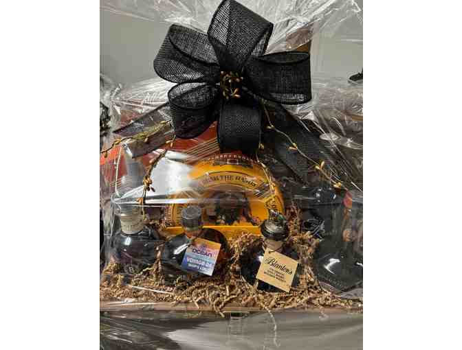 For the true aficionado, this Bourbon & Cigar Basket delivers an extraordinary tasting and smoking experience. Highlighting a remarkable selection of bourbons, this basket features iconic bottles like Blanton's Bourbon, the smooth and rare Eagle Rare 10-Year Bourbon, the bold Baker's 7 Single Barrel 107 Proof, and the unique Jefferson's Ocean Aged at Sea Bourbon, among others. Each bottle is a journey through the rich world of bourbon, offering complexity and depth with every sip.