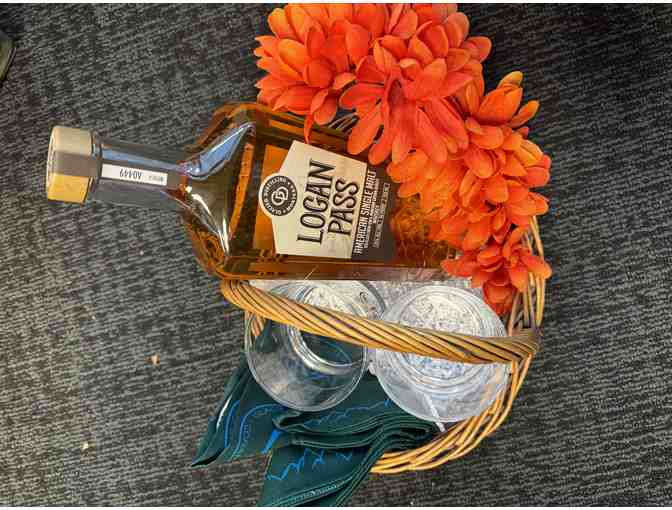 Savor the rich taste of Montana with this handcrafted whiskey basket! Featuring a premium single malt whiskey from Glacier Distilling, this gift is perfect for those who appreciate the art of fine spirits. Enjoy every sip in style with two classic whiskey glasses, and add a rugged Montana touch with a stylish bandana. Whether for a cozy night in or a celebratory toast, this basket brings the warmth and spirit of the mountains straight to your glass!