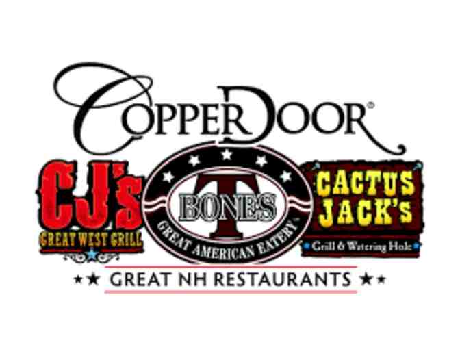 Two $25.00 Great NH Restaurants gift cards. These may be used at any T-BONES (Bedford, Concord, Derry, Hudson, Laconia, Salem), Copper Door (Bedford, Salem), or Cactus Jack's (Laconia).