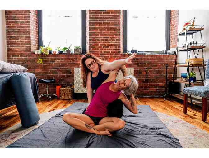 Therapeutic mat based manual therapy. Based in traditional Thai Massage methods. The client is fully clothed for this session. Thai Massage is an eastern based massage modality that encompasses deep tissue compression, myofascial stretching, acupressure, and assisted yoga positions to engage the whole body in improved mobilization. while also deeply relaxing the body at the joint level. EXP DATE: 12/31/2025