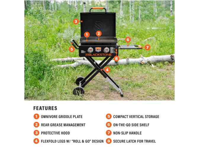 This griddle with flexfold legs is here to improve how you cook outside. The portable and collapsible design is perfect for the on-the-go chef!
