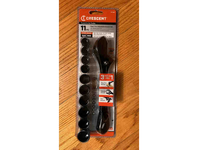 Three tools in one! The Crescent Pass-Thru Adjustable Wrench Set will come in handy! Serves as a Pass-Thru Ratchet, Adjustable Wrench, and Pipe Wrench. 10 sizes of socket.