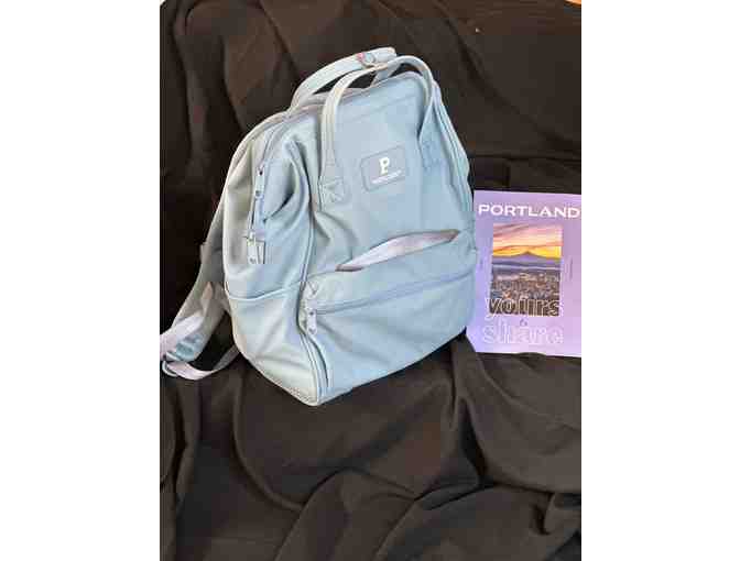 Portland Gear Cascade backpack filled with Oregon goodies as well as some items from our Oregon Convention Center