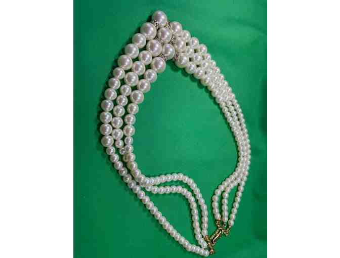 3 string Costume imitation pearl bead necklace with gold plated clasp.