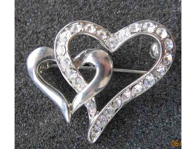 Modern metallic rhinestone brooch 1 1/2 in by 1 1/4 in