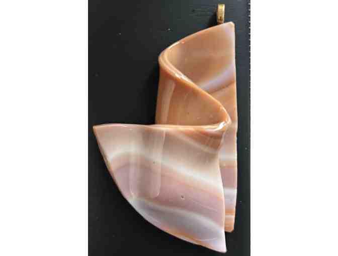 Unique hand made glass pendant - This striking glass pendant can never be repeated. The gracious curve was created in an accident during firing- a very lucky accident! Looks dramatic on a gold chain (not included)