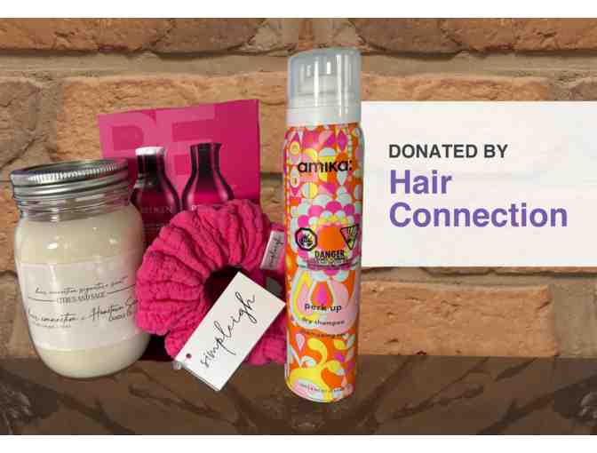 Treat yourself to some well-deserved self-care with this gift basket from Hair Connection. Inside, you'll find a scrunchie, dry shampoo, Redken shampoo & conditioner, and a refreshing citrus & sage candle—everything you need for a relaxing, rejuvenating experience.