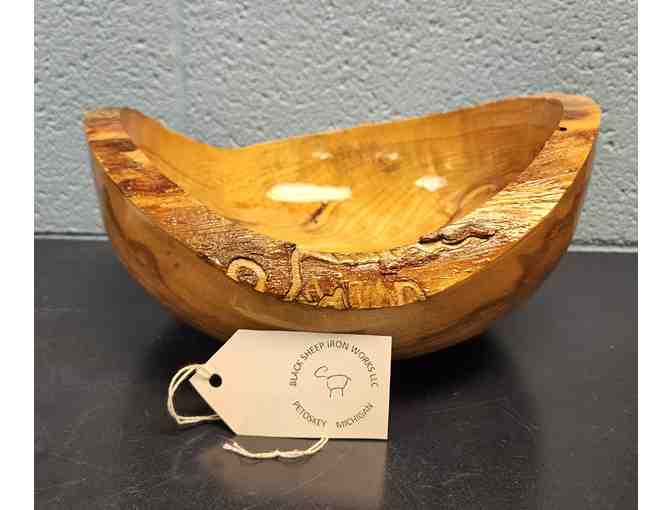 Handmade wooden white ash bowl donated by Black Sheep Metal Works