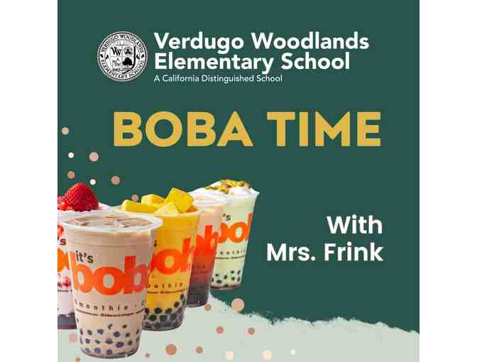 Walk to Boba Time with Mrs. Frink and enjoy a drink of choice and snack after school. The event will take place from 2:30-3:30pm on a date TBD by the teacher before school ends in June. Event is open to all VW students.