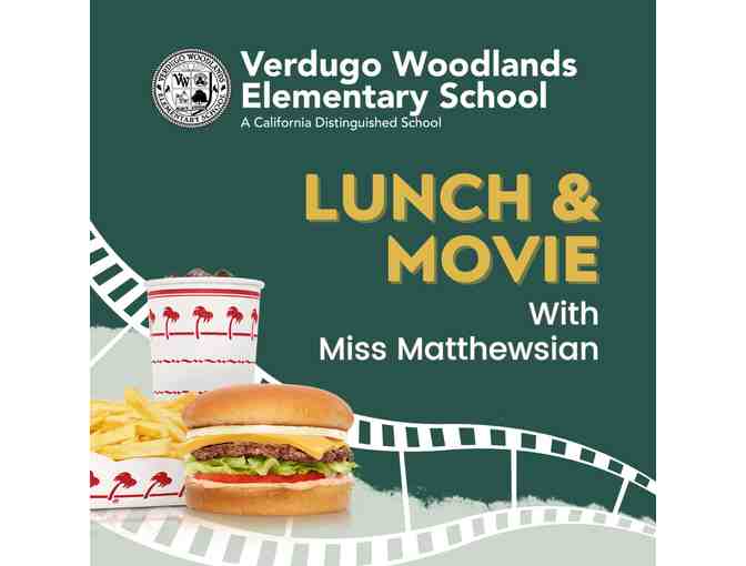 A tasty treat awaits! Kids will enjoy a classic In-N-Out burger (or cheeseburger), fries, and a drink along with a surprise movie choice by Miss Matthewsian!