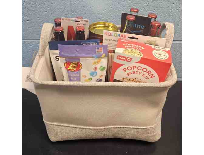 This Movie Night themed basket donated by Girls Golf consists of a $25 Netflix gift card, a $25 Amazon Prime gift card and various snacks in a decorative storage container