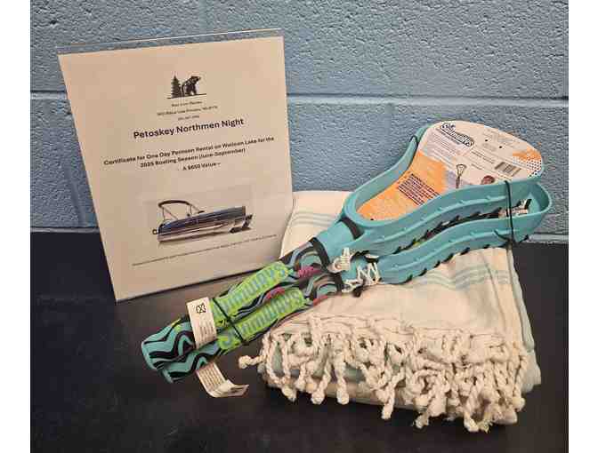 Lacrosse Team Basket consists of 2 Turkish Towels, Water Lacrosse game and a Pontoon Boach rental donated by Bear Cover Marina on Walloon Lake